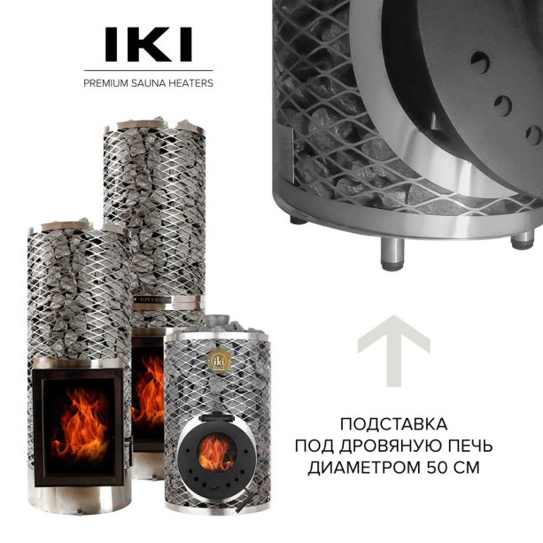 При покупке c нашего склада дровяных печей IKI до 2025 года выпуска: Loyly jr, KIVI и KIVI jr. дарим подставку диаметром 50 см. Подставка изготовлена из нержавеющей стали и оборудована регулируемыми по высоте ножками. Она защищает пол от перегрева и упрощает монтаж даже на неровной поверхности.