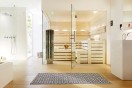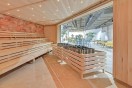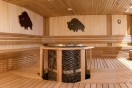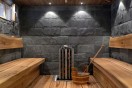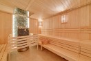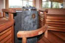 Каменка вмещает 160 кг камней и имеет мощность 13,8 кВт.