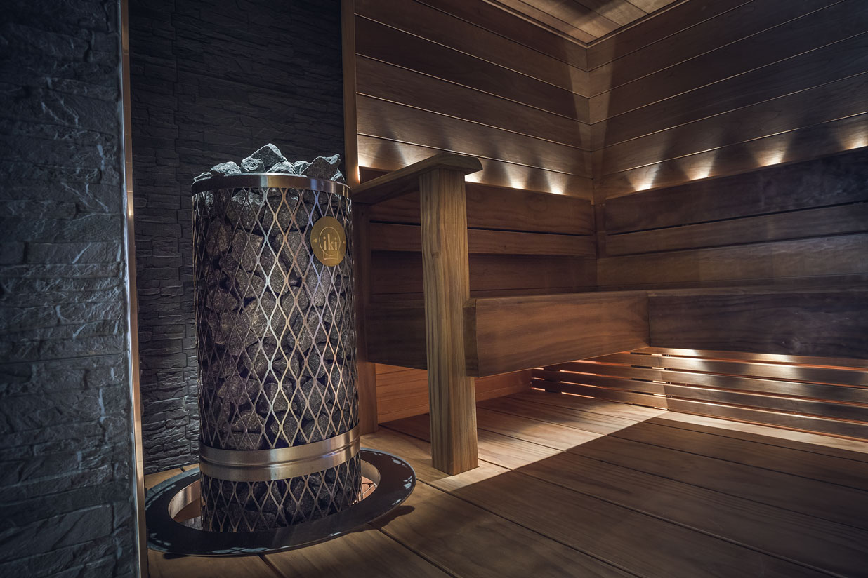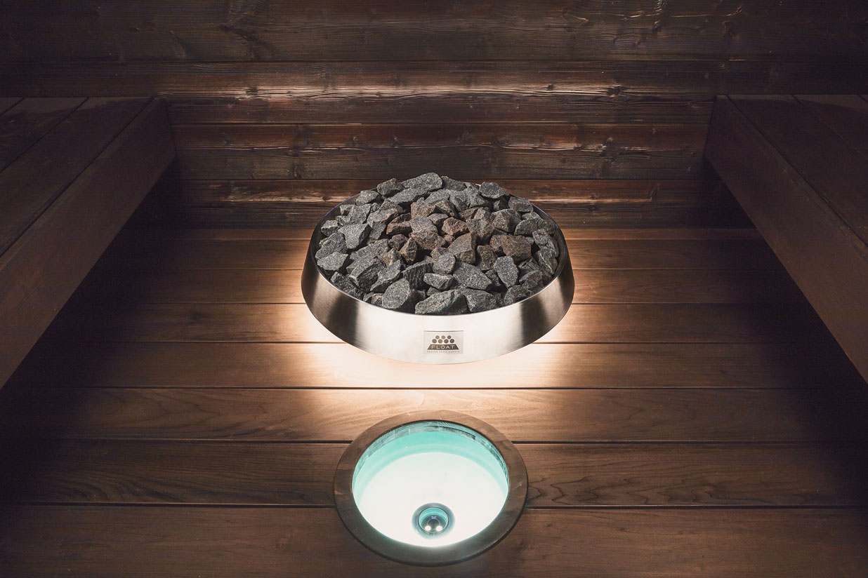 Каменка создана в сотрудничестве с дизайнером Eero Aarnio. Стильные, футуристичные формы и встроенная подсветка создают уникальное ощущение. Конструкция будто парит в воздухе.